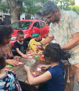 Fue así, que el 22 de febrero, mes del carnaval, cortamos la calle para jugar con Deti crianzas que realizó un taller de co-producción de mascaras con materiales de Infantozzi, Juegos de mesa, escalada, rifas, feria y espectáculos: Montevideo Social Club, Los Supersonicos, y Ñu fiesta acústica para bailar con los sentidos. El evento contó con el apoyo en la difusión de La Diaria.